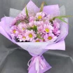 15 хризантем: хризантема кустовая розовая/сиреневая  - 15 шт.,  упаковка, лента.